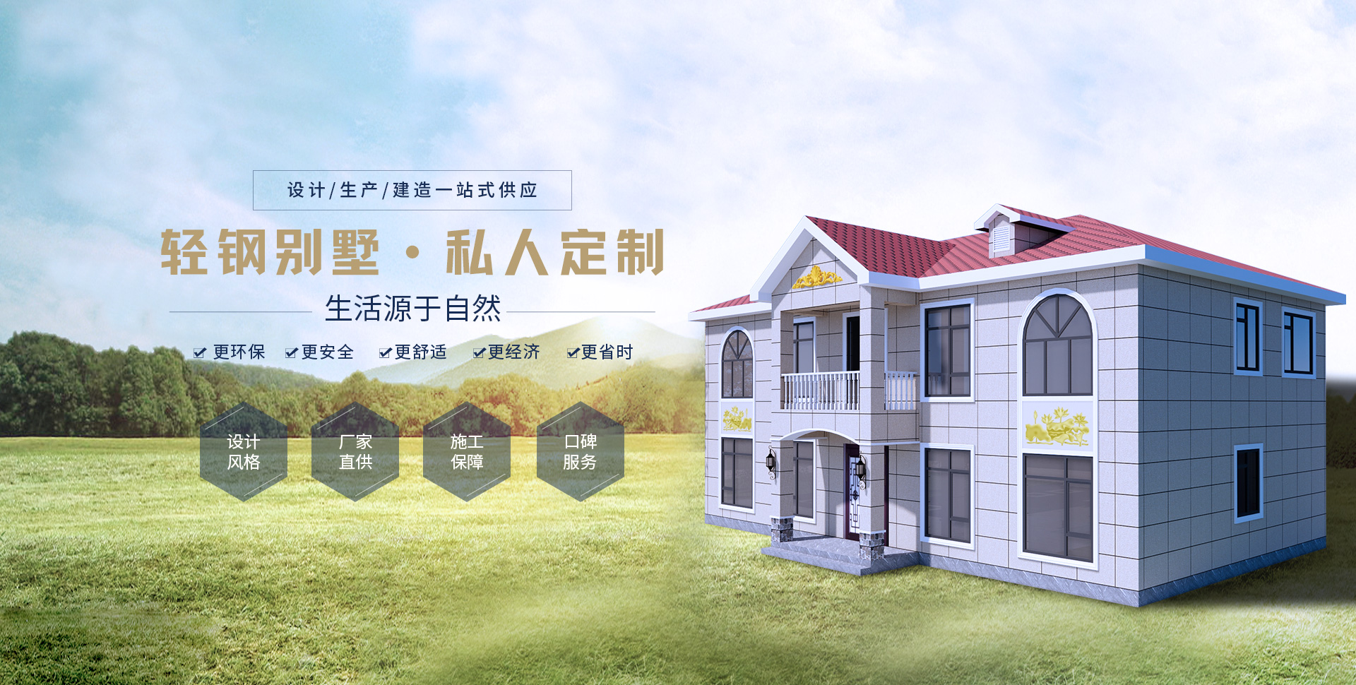 健康指標(biāo)輕鋼別墅的材料均為綠色建材,而且采用干作業(yè)施工,保護(hù)環(huán)境和減少污染,滿(mǎn)足生態(tài)環(huán)境要求,為人們提供了健康舒適的居住環(huán)境。